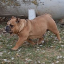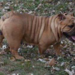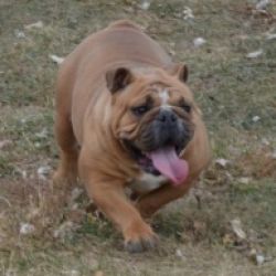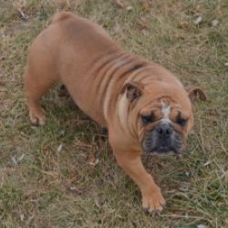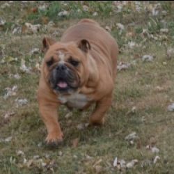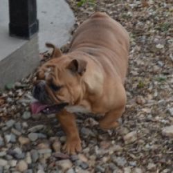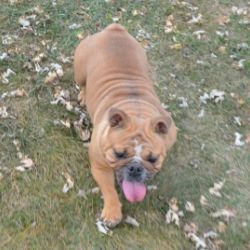 Emma has a pretty solid fawn coat to go with her sturdy, athletic build. She is inquisitive with a laid back personality.